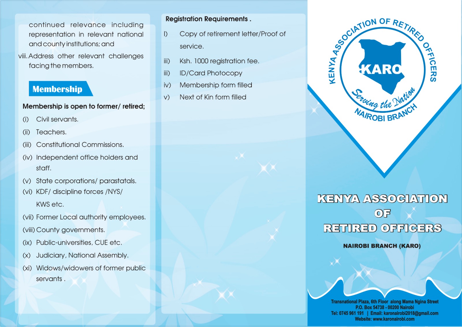 - Ksh. 1000 registration fee.